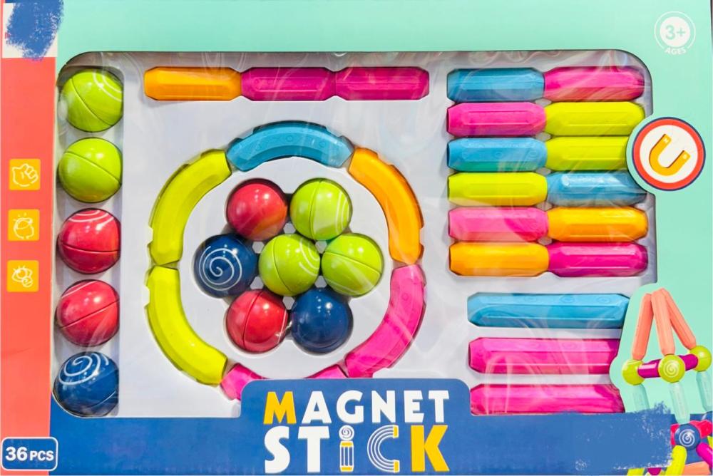 نقدم لكم "Magnet Stick"، مجموعة تركيبات مغناطيسية مكونة من 36 قطعة، مصممة خصيصًا لتنمية مهارات طفلك الإبداعية والذهنية بطريقة ممتعة وتفاعلية.