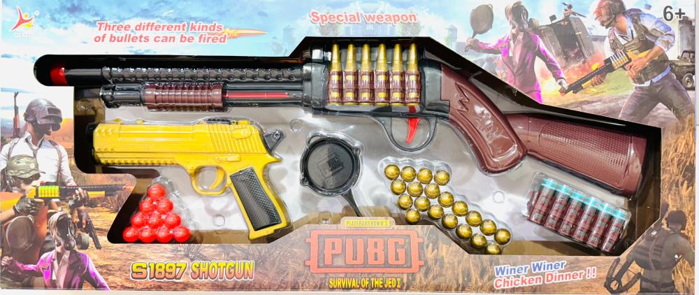 - بندقية ببجي S1897 واقعية: تصميم مفصل وجميل لبندقية الشوتجن الشهيرة S1897، بلونين بني ورمادي/أسود جذاب، لتعزيز تجربة اللعب.