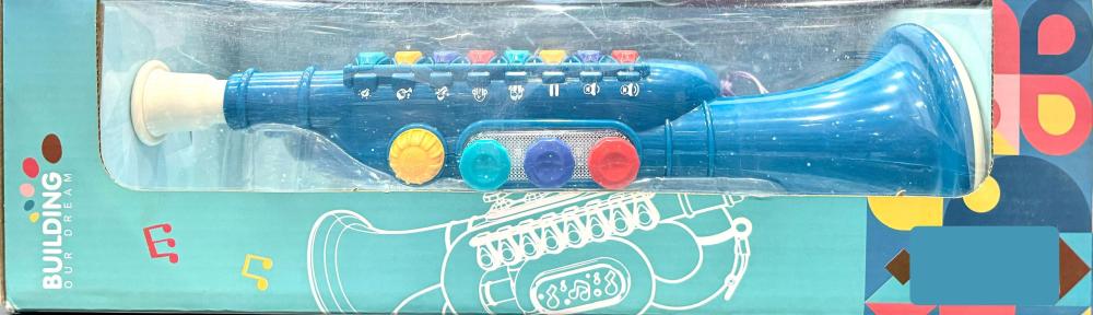 "امنح طفلك هدية الموسيقى مع بوق الألعاب الأزرق الجذاب هذا! مصمم خصيصًا للأيدي الصغيرة، فهو ليس مجرد لعبة، بل هو بوابة لعالم اللحن والإيقاع.