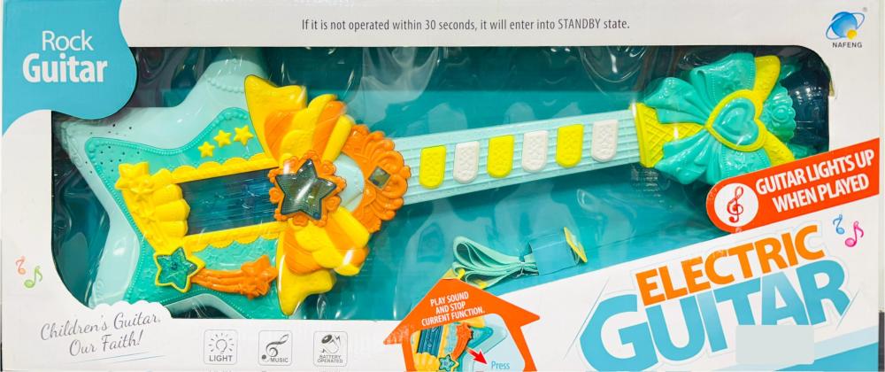 "دع نجم الروك الصغير بداخلك يتألق مع غيتار الروك الكهربائي هذا! هذه الجيتار الرائع، بتصميمه اللامع والألوان الزاهية، هو الهدية المثالية لأي طفل يحلم بأن يكون نجمًا موسيقيًا.الميزات الرئيسية:أضواء الجيتار تضيء عند العزف: تضيء الأضواء المبهجة عند اللعب، مما يضيف لمسة من السحر والإثارة لأداء طفلك.جيتار الأطفال، إيماننا! (Children's Guitar, Our Faith!): شعار يعكس الالتزام بتقديم أفضل تجربة موسيقية للأطفال.وظيفة الصوت والتشغيل/الإيقاف للوظيفة الحالية (Play Sound and Stop Current Function): زر واحد يسمح لطفلك بالتبديل بين الأصوات وإيقاف الوظائف الحالية بسهولة.تصميم جذاب: مزين بنجوم وملصقات ذهبية وزرقاء جذابة، مما يجعله آلة موسيقية مثيرة للإعجاب.وضع الاستعداد التلقائي: يدخل الجيتار في وضع الاستعداد إذا لم يتم تشغيله لمدة 30 ثانية، مما يساعد على توفير طاقة البطارية.تطوير المهارات: يشجع على:الإبداع الموسيقي: من خلال التجربة مع الأصوات والألحان.التنسيق بين اليد والعين: أثناء العزف على الأوتار والأزرار.المهارات السمعية: بالاستماع إلى النغمات والإيقاعات المختلفة.خفيف الوزن وسهل الحمل: مصمم ليناسب الأيدي الصغيرة، مما يجعله مثاليًا للعب في أي مكان.اجعل أوقات اللعب مليئة بالإيقاع والمرح مع هذا الجيتار الكهربائي الرائع، واطلق العنان للموسيقي الصغير في طفلك!"