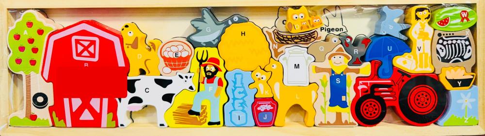 لعبة بازل المزرعة الأبجدية الخشبية - مغامرة تعليمية ممتعة لطفلك!اكتشف عالم المزرعة الملون والأحرف الأبجدية مع لعبة البازل الخشبية التعليمية الفريدة هذه! صُممت هذه اللعبة لتجمع بين متعة اللعب وتنمية المهارات الأساسية، وهي مثالية للأطفال الذين يخطون خطواتهم الأولى في عالم التعلم.لماذا تختار لعبة بازل المزرعة الأبجدية الخشبية؟تعلم تفاعلي: تساعد الأطفال على التعرف على الأحرف الأبجدية (من A إلى Z) من خلال قطع البازل الكبيرة والسهلة الإمساك. كل حرف مرتبط بصورة جذابة لعنصر من عناصر المزرعة (مثل الحظيرة، الأبقار، الجرارات، وغيرها).تنمية شاملة للمهارات:التعرف على الحروف: يتعلم الأطفال الأحرف الأبجدية الكبيرة بسهولة.تطوير المفردات: يتعرفون على كلمات جديدة مرتبطة بالمزرعة.حل المشكلات: تحدي وضع كل قطعة في مكانها الصحيح يعزز مهارات التفكير المنطقي وحل المشكلات.المهارات الحركية الدقيقة: ينمي الإمساك بالقطع ووضعها التنسيق بين اليد والعين والبراعة.التفكير الإدراكي: تحفز القدرة على ربط الأشكال والصور والحروف.تصميم جذاب ومبهج: تتميز اللعبة بألوان زاهية ورسومات كرتونية لطيفة لشخصيات وحيوانات المزرعة، مما يجذب انتباه الأطفال ويجعل التعلم ممتعًا.مواد عالية الجودة: مصنوعة من الخشب المتين والآمن على الأطفال، مما يضمن متانة اللعبة واستدامتها لسنوات من اللعب.تصميم مناسب للأيدي الصغيرة: القطع كبيرة بما يكفي لسهولة الإمساك بها والتحكم فيها من قبل أيدي الأطفال.لعبة واحدة، عالم من الاكتشافات!لعبة بازل المزرعة الأبجدية الخشبية هي أكثر من مجرد لعبة؛ إنها بوابة إلى التعلم المبكر والمرح. مثالية كهدية لأعياد الميلاد أو أي مناسبة أخرى.اجعل التعلم مغامرة شيقة في المزرعة! اطلبها الآن وقدم لطفلك هدية التعليم والمرح!