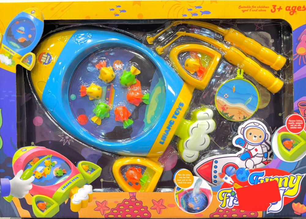 اجعل وقت اللعب أكثر إثارة ومتعة مع لعبة صيد السمك هذه، واصطحب طفلك في رحلة مائية فضائية لا تُنسى!"